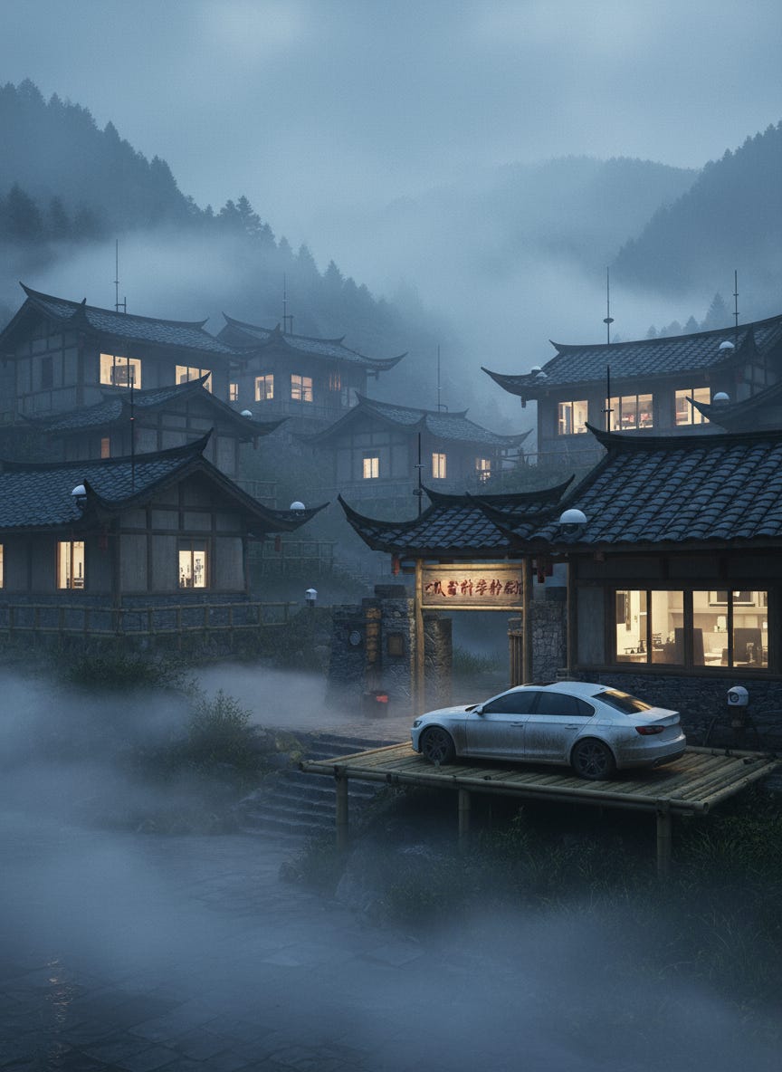 Outside, the valley’s mist folded around the white sedan like a curtain closing. Behind it, the faint rhythm of Go stones being placed one by one — a sound I would carry for the rest of my life.